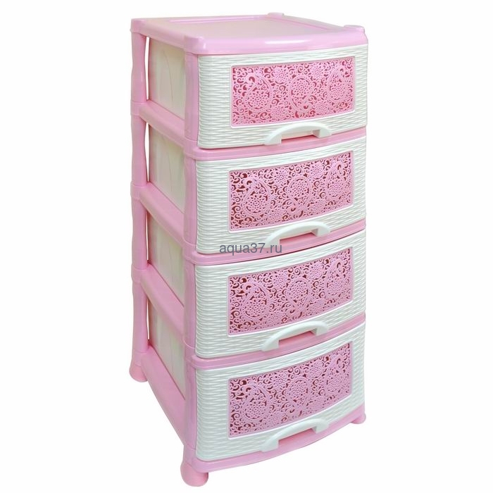 Комод из пищевого пластика с четырьмя выдвижными ящиками предназначен для хранения вещей и продуктов питания и гармонично впишется в интерьер любой комнаты. Легкий и вместительный комод поможет обеспечить порядок в доме. Узор на передних панелях придаст индивидуальность и подарит настроение.
