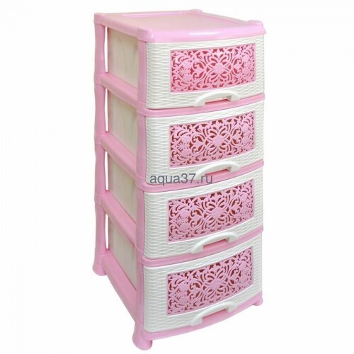 Комод из пищевого пластика с четырьмя выдвижными ящиками предназначен для хранения вещей и продуктов питания и гармонично впишется в интерьер любой комнаты. Легкий и вместительный комод поможет обеспечить порядок в доме. Узор на передних панелях придаст индивидуальность и подарит настроение.