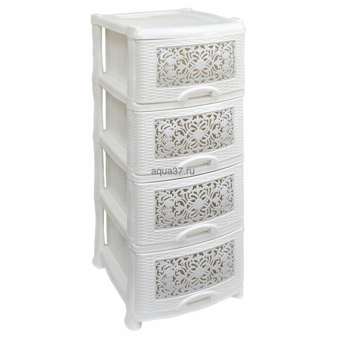 Комод из пищевого пластика с четырьмя выдвижными ящиками предназначен для хранения вещей и продуктов питания и гармонично впишется в интерьер любой комнаты. Легкий и вместительный комод поможет обеспечить порядок в доме. Узор на передних панелях придаст индивидуальность и подарит настроение.