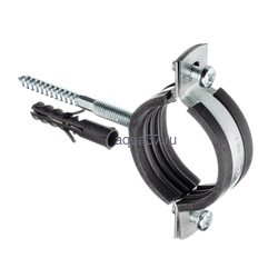 Хомут состоит из двух стальных скоб, быстро фиксирующихся затворов с винтами для зятяжки и гайки. Для звукоизоляции и понижения вибраций, которые возникают в процессе эксплуатации трубопроводов, в хомутах используется специальная прокладка из синтетического каучука. Особенность конструкции обеспечивает равномерное распределение напряжения при затяжке хомута, тем самым, защищая трубу от повреждений и сохраняя ее форму. Крепление к несущим стенам, полам и потолкам осуществляется при помощи шпильки-шурупа и дюбеля.
