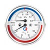 Прибор предназначен для одновременного измерения избыточного давления и температуры воды и других сред, неагрессивных к сплавам меди. Он представляет собой объединенные в одном корпусе деформационный манометр и биметаллический термометр. Для снятия показаний предусмотрены две шкалы – давления и температуры. Комплектуется клапаном, позволяющим демонтировать термоманометр без разгерметизации системы. Класс точности – 2,5. Диаметр корпуса – 80 мм. Диапазон измеряемых температур – от 0 до 120 или 150 °С, давления – от 0 до 6 или 10 бар. Присоединение – осевое (заднее). Диаметр присоединения – ½".