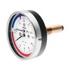 Прибор предназначен для одновременного измерения избыточного давления и температуры воды и других сред, неагрессивных к сплавам меди. Он представляет собой объединенные в одном корпусе деформационный манометр и биметаллический термометр. Для снятия показаний предусмотрены две шкалы – давления и температуры. Комплектуется клапаном, позволяющим демонтировать термоманометр без разгерметизации системы. Класс точности – 2,5. Диаметр корпуса – 100 мм. Диапазон измеряемых температур – от 0 до 150 °С, давления – от 0 до 10 бар. Присоединение – осевое (заднее). Диаметр присоединения – ½".