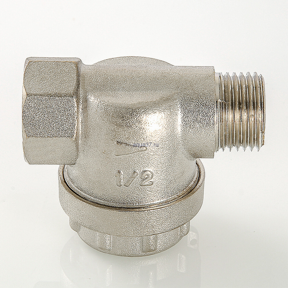 Фильтр механической очистки прямого типа. Устанавливается в горизонтальном положении, пробкой вниз. Корпус и пробка фильтра выполнены из латуни марки CW617N (европейский стандарт EN 12165), никелированы. Между ними имеется уплотнительное кольцо из EPDM. Пробка оснащена отверстием для пломбировки. Размер ячеек сетки фильтрующего элемента из нержавеющей стали – 300 мкм, максимальное рабочее давление – 16 бар. Максимальная рабочая температура фильтруемой среды – 110 °C. Резьба присоединения – внутренняя/наружная.