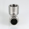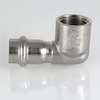 Пресс-угольник из нержавеющей стали с внутренней резьбой обеспечивает соединение тонкостенной стальной трубы с резьбовым элементом монтируемой системы под углом 90°. Область применения – трубопроводы водоснабжения, отопления, иные инженерные и технологические установки с рабочей температурой до 120 °С и давлением до 16 бар.