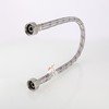 Подводки гибкие для воды VTf.001.IS рассчитаны на эксплуатацию при рабочем давлении 10 бар (максимальное давление – 20 бар) и температуре от 1 до 95 °C (максимальная температура – 100 °C). Внутренний диаметр шланга – 8,5 ± 0,5 мм. Закладной ниппель, накидные гайки, пресс-гильзы и оплетка подводок изготовлены из нержавеющей стали AISI 301. Использование ниппеля из нержавеющей стали позволило исключить излом этого элемента, повысить надежность всего изделия.