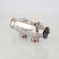 Коллектор с отсекающими кранами 1" на 2 выхода евроконус 3/4" Valtec