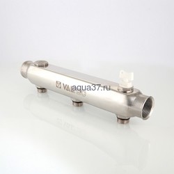 Коллектор с отсекающими кранами 1" на 3 выхода 1/2" с наружной резьбой Valtec