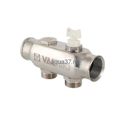 Коллектор с отсекающими кранами 1" на 2 выхода 1/2" с наружной резьбой Valtec