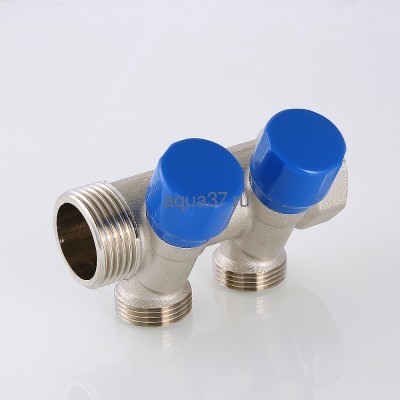 Латунный никелированный коллектор на 2, 3 и 4 выхода диаметром 3/4" с наружной резьбой, стандарт присоединения – «евроконус». На каждом выходе предусмотрен вентиль для регулирования расхода рабочей среды. Диаметр коллектора – 1", резьба – внутренняя/наружная. Ремонтопригодный. Рабочая температура теплоносителя – до 110 °С, давление – до 10 бар. Применяется для распределения потоков жидкостей в контурах теплого пола, радиаторного отопления, холодного и горячего водоснабжения. Комплектуется набором ручек вентилей красного и синего цвета.