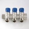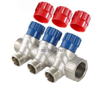 Латунный никелированный коллектор на 2 выхода диаметром 1/2" с наружной резьбой. На каждом выходе предусмотрен вентиль для регулирования расхода рабочей среды со средним полным ресурсом 8 тыс. циклов. Диаметр коллектора – 3/4, резьба – внутренняя/наружная. Ремонтопригодный. Рабочая температура теплоносителя – до 110 °С, давление – до 10 бар. Применяется для распределения потоков жидкостей в контурах теплого пола, радиаторного отопления, холодного и горячего водоснабжения.