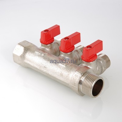 Коллектор с отсекающими кранами 1" на 2 выхода 1/2" с наружной резьбой Valtec
