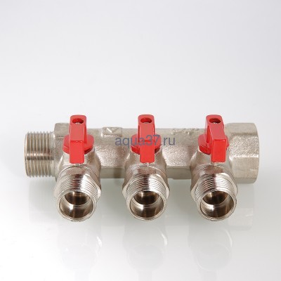 Никелированный коллектор для воды и других сред, неагрессивных к материалам изделия. Корпус изготовлен из качественной сантехнической латуни марки CW617N (европейский стандарт ЕN 12165). Имеет выходы диаметром ½" с наружной резьбой. На каждом выходе предусмотрен отсекающий шаровой кран с минимальным ресурсом 4 тыс. циклов. Диаметр коллектора – ¾ , резьба – внутренняя/наружная. Неремонтопригодный. Рабочая температура – до 110 °С, давление – до 10 бар.