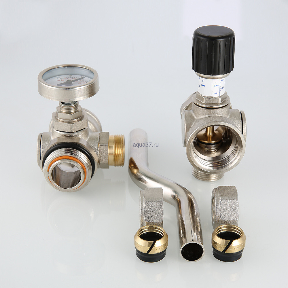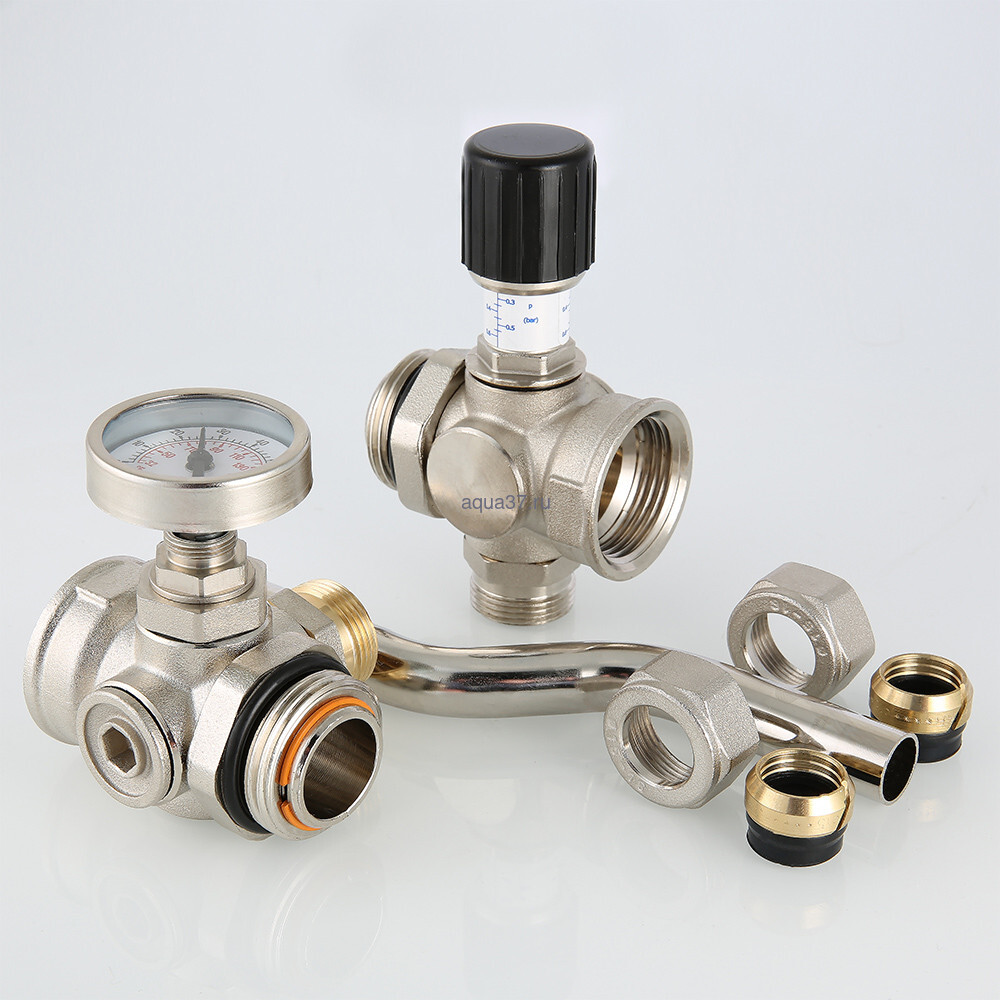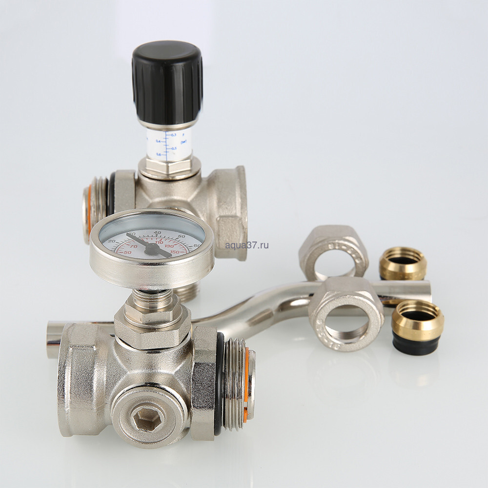 Байпас проходной с перепускным клапаном и термометром Valtec
