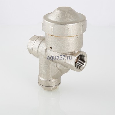 (VT.298.NR) КФРД – разработанное и запатентованное VALTEC изделие, представляющее собой комбинацию углового шарового крана, прямого фильтра механической очистки и поршневого редуктора давления с фиксированной заводской настройкой 3,4 бара. Все три элемента объединены в одном корпусе, выполненном из латуни марки CW617N с нанесением никелевого покрытия. Материал седельных уплотнений крана – тефлон, фильтроэлемента – нержавеющая сталь, тарелки поршня редуктора – латунь CW614N. Латунный шаровой затвор крана хромирован по медной подложке. Кран оснащен ручкой типа «бабочка». Резьба присоединений – внутренняя/внутренняя. Кран с фильтром и редуктором давления предназначен для установки в узлах ввода холодной и горячей воды многоквартирных зданий. Номинальное давление – 16 бар, максимальная рабочая температура – 120 °C, степень фильтрации – 500 мкм. Монтажная длина изделия – 78 мм. Данная модель – в правом исполнении (R).
