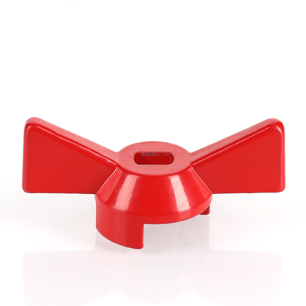 Ручка-бабочка для крана красная предназначена для использования в качестве запасной детали в случае утери или при необходимости замены аналогичной штатной детали шаровых кранов серий VALTEC BASE.