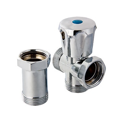 Вентиль предназначен для подключения к водопроводу сантехнического прибора, стиральной или посудомоечной машины перед смесителем. Позволяет регулировать и перекрывать подачу воды к потребителю. Ремонтопригоден. Корпус – латунный, никелированный. Пропускная способность в полностью открытом положении – 2,5 куб. м/ч. Минимальный ресурс – 15 тыс. циклов. Присоединительные диаметры: 3/4 (внутренняя резьба) х 3/4 (наружная, под накидную гайку) x 3/4 (наружная, под накидную гайку)". В комплекте – удлинитель (внутренняя/наружная резьба, присоединительный диаметр – 3/4").