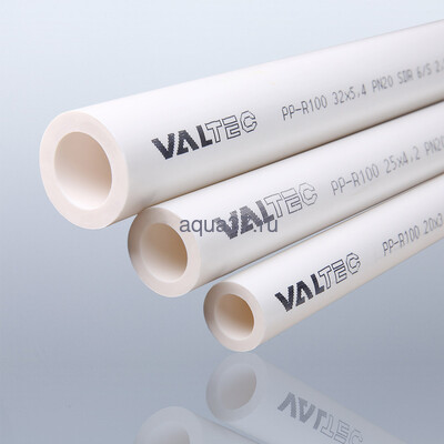 Труба из полипропилена PP-R 100 для систем питьевого и хозяйственно-питьевого холодного водоснабжения, горячего водоснабжения, а также технологических трубопроводов, транспортирующих жидкости и газы, неагрессивные к материалам трубы. Классы эксплуатации по ГОСТ 32415-2013 – 1, 2, ХВ. Допустимое рабочее давление при температуре воды 70 °C – 10 бар, при транспортировке холодной воды – 20 бар. Технология монтажа трубопроводов – полифузионная сварка. Форма поставки – отрезки длиной 4 м. Количество трубы в упаковке зависит от ее типоразмера (20 мм – 120 м, 25 – 80, 32 – 60, 40 – 40, 50 – 24, 63 – 16, 75 – 12, 90 – 8). Приведена цена погонного метра.