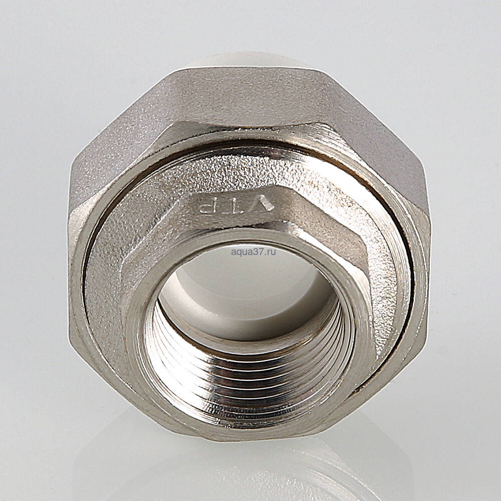 Полипропиленовый фитинг для создания разъемного, с использованием накидной гайки, соединения полипропиленового трубопровода с трубопроводом или арматурой из других материалов. Уплотнительное кольцо выполнено из синтетического каучука EPDM. Резьба фитинга – внутренняя трубная по ГОСТу 6357.