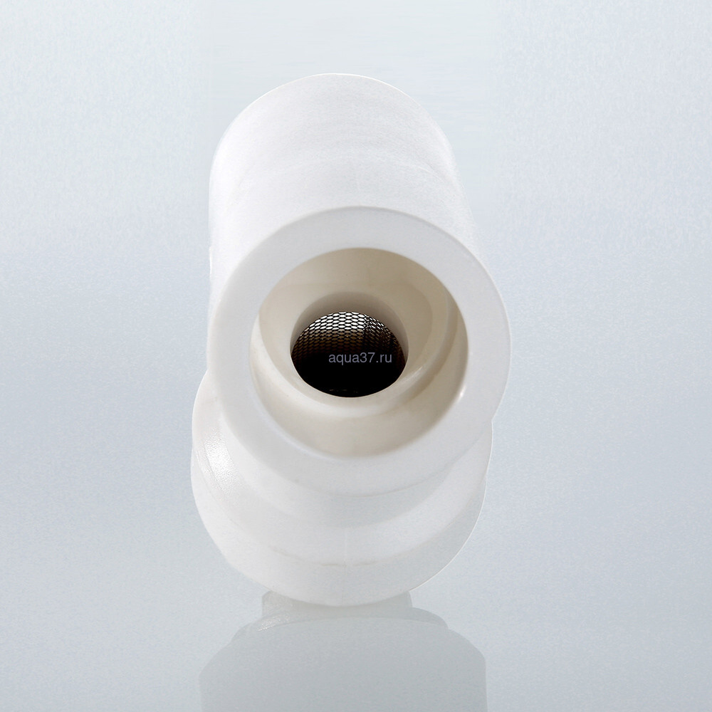 Фильтр с корпусом из полипропилена и сетчатым элементом из нержавеющей стали марки AISI 304, предназначенный для очистки транспортируемой жидкости от нерастворимых примесей размером от 300 мкм. Используется в составе систем из полипропиленовых труб c рабочей температурой до 90 °С и при номинальном давлении (PN) 25 бар. Пробка и закладная деталь фильтра выполнены из латуни марки CW617N, никелированы, уплотнительная прокладка – из синтетического каучука EPDM. Монтаж фильтра производится методом раструбной сварки. Присоединения – внутреннее/внутреннее.