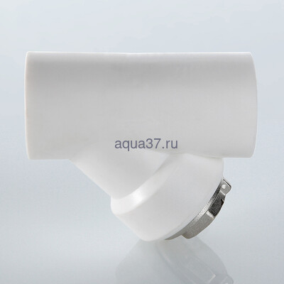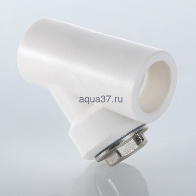 Фильтр с корпусом из полипропилена и сетчатым элементом из нержавеющей стали марки AISI 304, предназначенный для очистки транспортируемой жидкости от нерастворимых примесей размером от 300 мкм. Используется в составе систем из полипропиленовых труб c рабочей температурой до 90 °С и при номинальном давлении (PN) 25 бар. Пробка и закладная деталь фильтра выполнены из латуни марки CW617N, никелированы, уплотнительная прокладка – из синтетического каучука EPDM. Монтаж фильтра производится методом раструбной сварки. Присоединения – внутреннее/внутреннее.