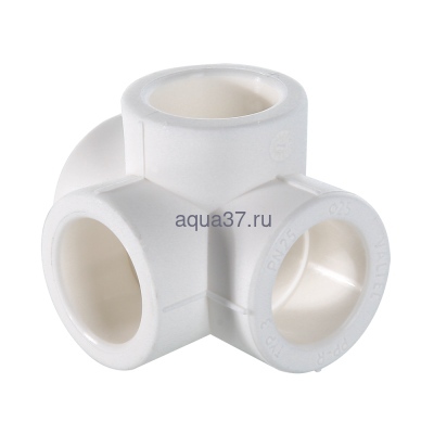 Полипропиленовый фитинг – крестовина двухплоскостная. Позволяет выполнять присоединение трубопроводов в двух взаимоперпендикулярных плоскостях. Равнопроходная. Монтаж производится методом раструбной сварки. Свариваемые поверхности – внутренние.