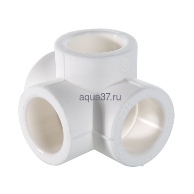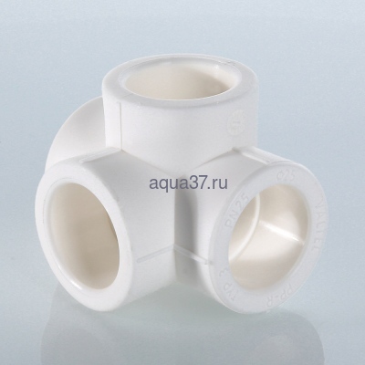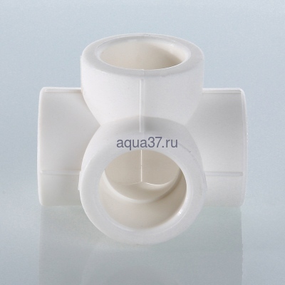 Полипропиленовый фитинг – крестовина двухплоскостная. Позволяет выполнять присоединение трубопроводов в двух взаимоперпендикулярных плоскостях. Равнопроходная. Монтаж производится методом раструбной сварки. Свариваемые поверхности – внутренние.