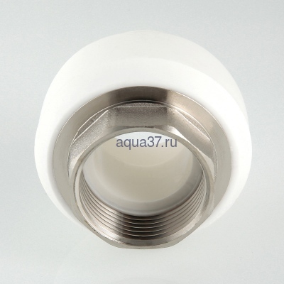 Прямой полипропиленовый фитинг для соединения полипропиленовой трубы и компонента инженерной системы с резьбовым подключением. Резьба фитинга – внутренняя трубная по ГОСТу 6357. Предусмотрен участок закладной детали под гаечный ключ.