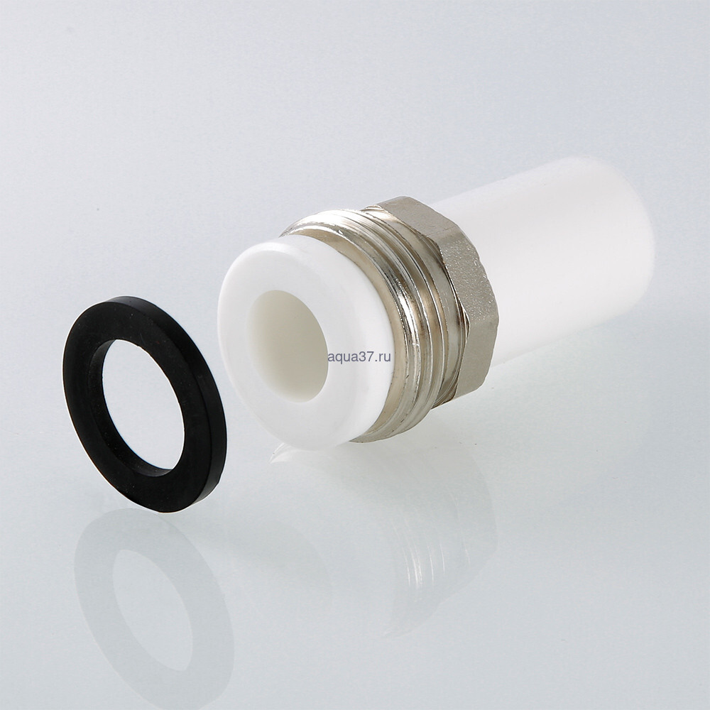 Фитинг для соединения полипропиленового трубопровода и компонента инженерной системы с помощью накидной гайки. Резьба – наружная трубная по ГОСТу 6357.