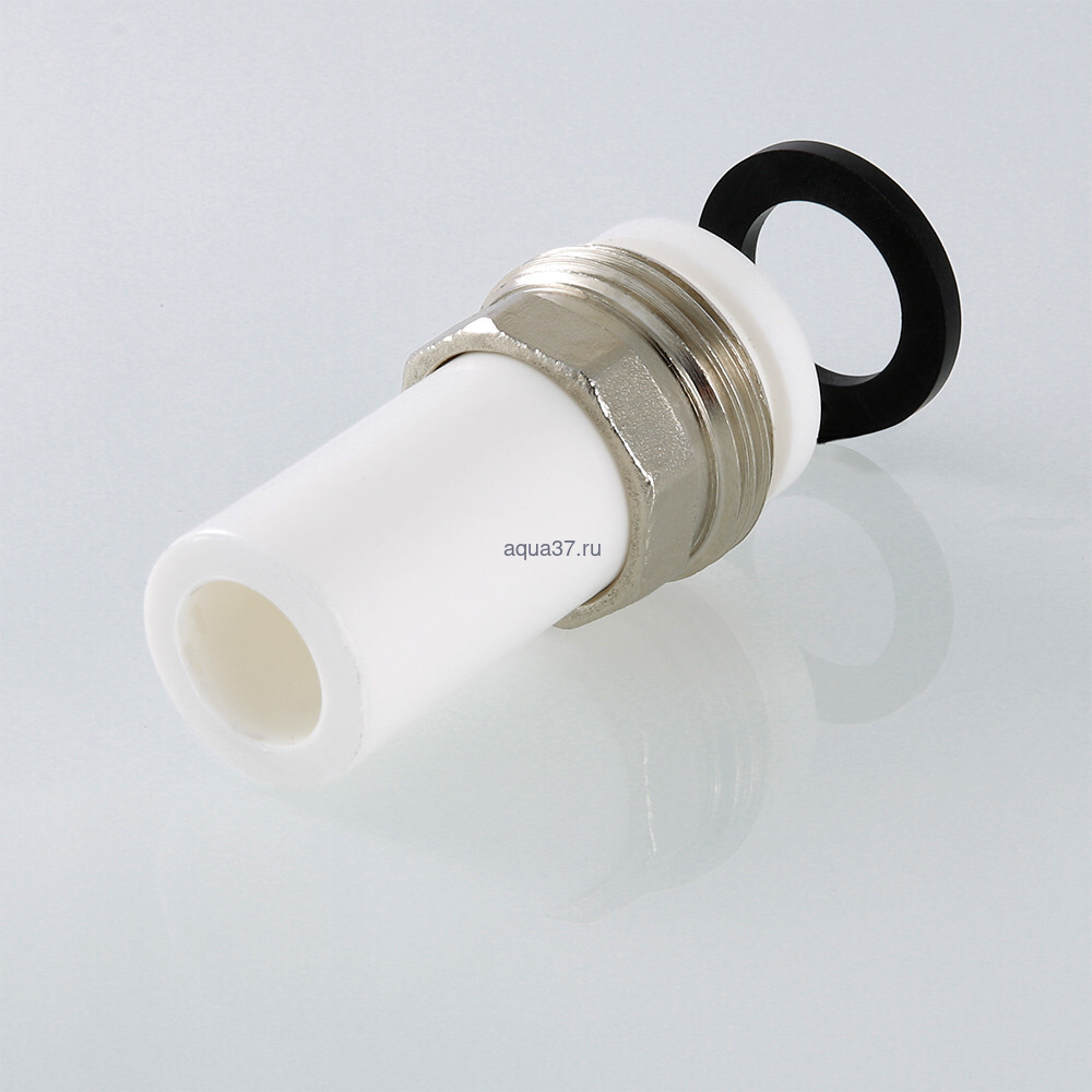 Фитинг для соединения полипропиленового трубопровода и компонента инженерной системы с помощью накидной гайки. Резьба – наружная трубная по ГОСТу 6357.