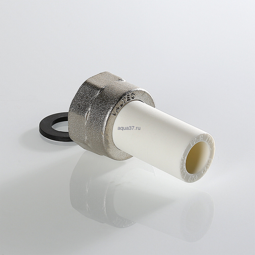 Штуцер полипропиленовый с накидной гайкой. Позволяет подсоединить к трубопроводу из полипропилена элемент системы с резьбовым подключением. Накидная гайка выполнена из латуни, никелирована. Резьба – внутренняя.