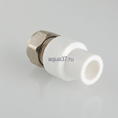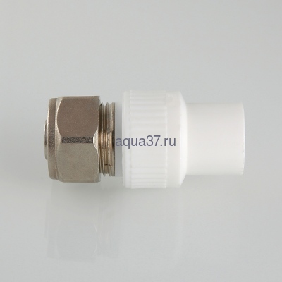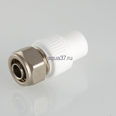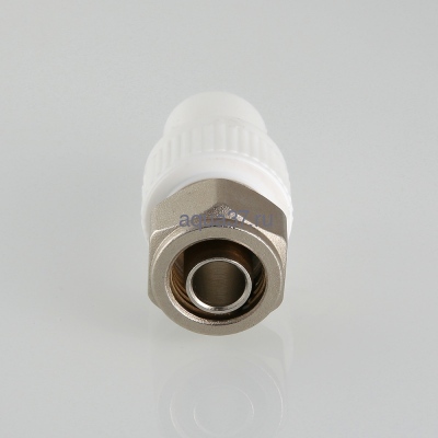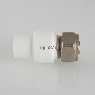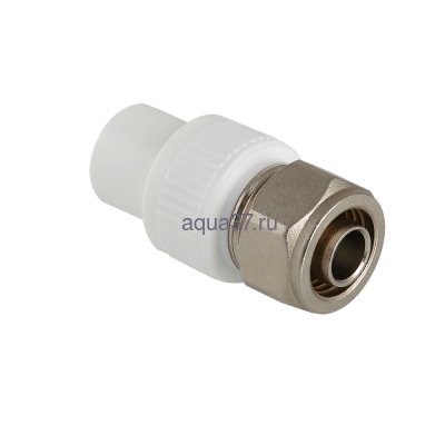 Фитинг для подключения к полипропиленовому коллектору трубы из сшитого полиэтилена (PEX) размером 16 х 2,0 мм. Монтаж фитинга к коллектору осуществляется раструбной сваркой (свариваемая поверхность – наружная, диаметр – 20 мм), присоединение трубы – обжимное. Металлические элементы коллекторного фитинга выполнены из качественной латуни, закладная деталь и накидная гайка никелированы. Материал уплотнения – EPDM.
