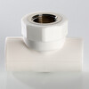 Трехсторонний полипропиленовый фитинг для подсоединения к полипропиленовому трубопроводу компонента инженерной системы с резьбовым подключением. Резьба фитинга – внутренняя трубная по ГОСТу 6357.