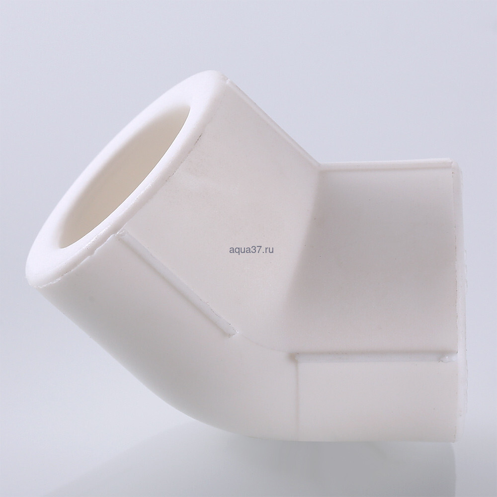 Двухсторонний угловой полипропиленовый фитинг (отвод), позволяющий изменить направление полипропиленового трубопровода на 45°. Монтаж осуществляется методом раструбной сварки.