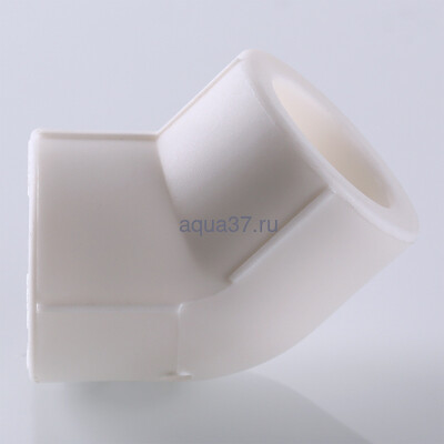 Двухсторонний угловой полипропиленовый фитинг (отвод), позволяющий изменить направление полипропиленового трубопровода на 45°. Монтаж осуществляется методом раструбной сварки.