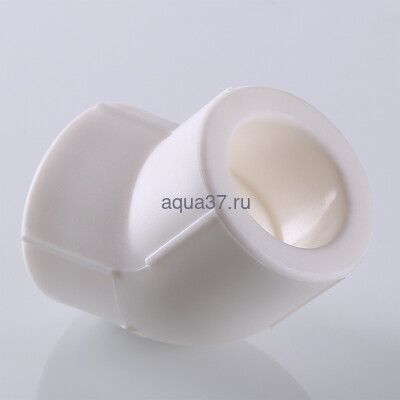 Двухсторонний угловой полипропиленовый фитинг (отвод), позволяющий изменить направление полипропиленового трубопровода на 45°. Монтаж осуществляется методом раструбной сварки.