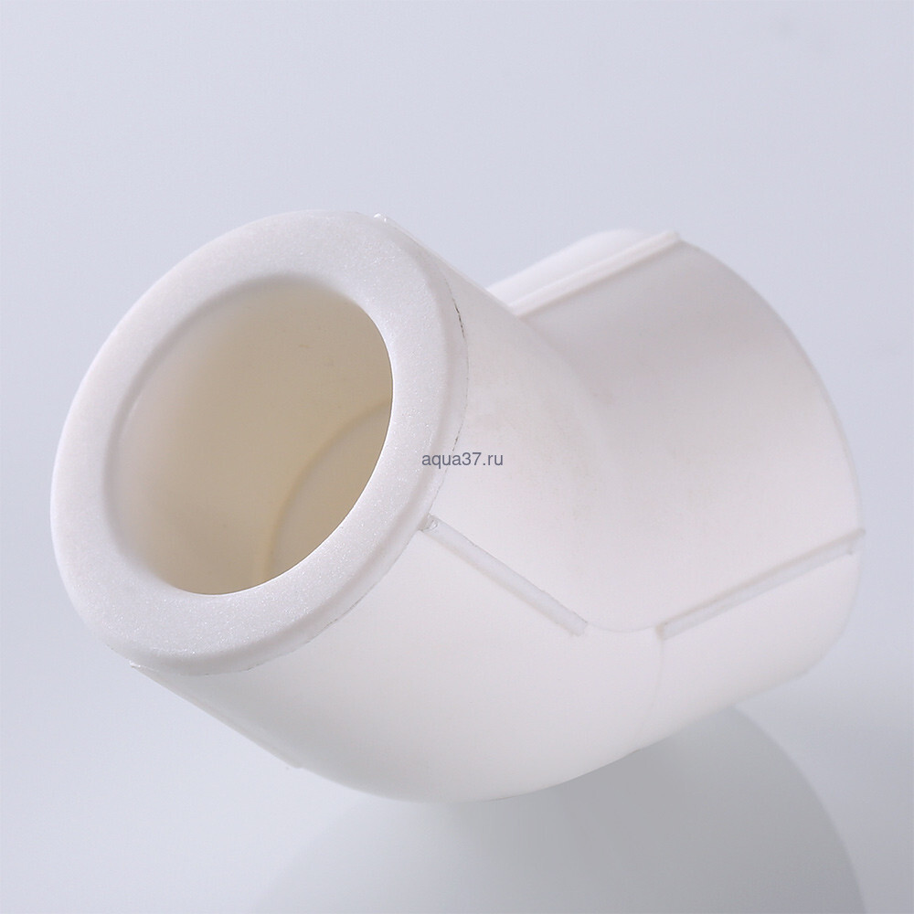 Двухсторонний угловой полипропиленовый фитинг (отвод), позволяющий изменить направление полипропиленового трубопровода на 45°. Монтаж осуществляется методом раструбной сварки.