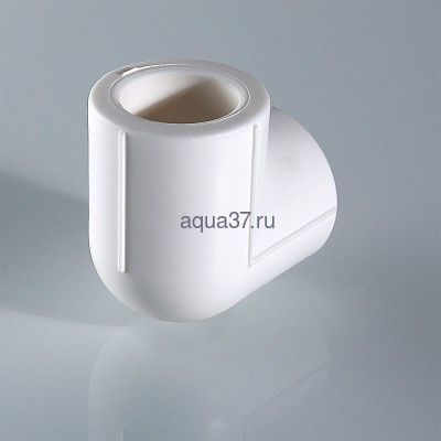 Двухсторонний фитинг для соединения элементов полипропиленового трубопровода под углом 90° друг к другу. Монтаж осуществляется методом раструбной сварки.