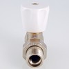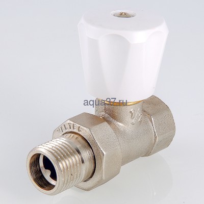 Прямой компактный (облегченный) радиаторный клапан. Основное назначение – ручное плавное регулирование расхода теплоносителя через отопительный прибор. При замене регулировочной ручки на защитный колпачок может использоваться в качестве настроечного клапана. Наличие полусгона позволяет монтировать и демонтировать клапан без демонтажа трубопровода. Ремонтопригодный. Рабочая температура – до 110 °С, давление – до 10 бар. Резьба присоединений – внутренняя/наружная.