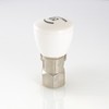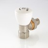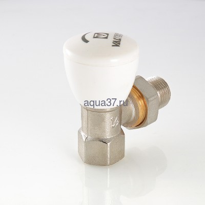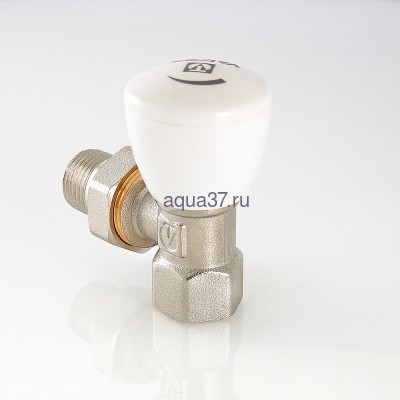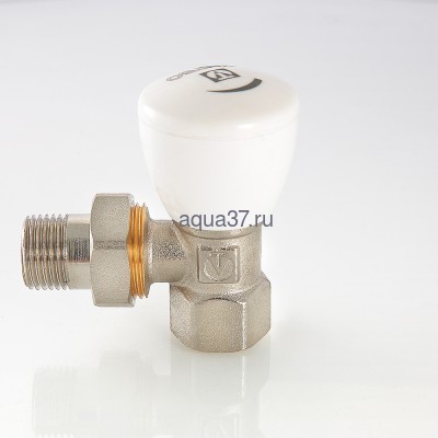 Угловой радиаторный клапан. Основное назначение – ручное плавное регулирование расхода теплоносителя через отопительный прибор. При замене регулировочной ручки на защитный колпачок может использоваться в качестве настроечного клапана. Наличие полусгона позволяет монтировать и демонтировать клапан без демонтажа трубопровода. Ремонтопригодный. Рабочая температура – до 130 °С, давление – до 10 бар. Резьба присоединений – внутренняя/наружная.