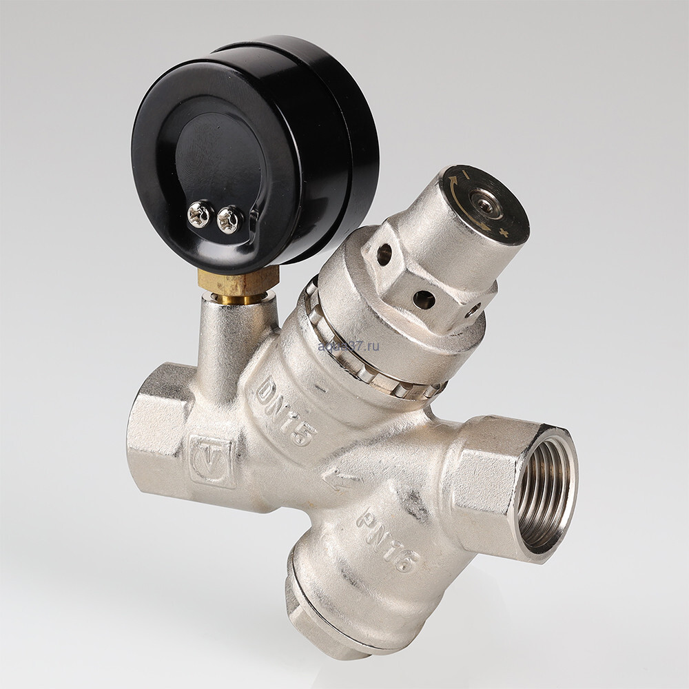 Редуктор снабжен манометром, который позволяет производить точную настройку выходного давления и дает возможность контролировать давление при водоразборе. Для защиты поршневых уплотнений и внутренней импульсной линии редуктор совмещен с косым фильтром механической очистки с размером ячейки 500 мкм. Пробка косого фильтра имеет ушко для пломбировки.