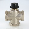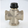 (VT.MR02.N) Клапан предназначен для использования в смесительных узлах гидравлических систем (байпасные узлы подмеса, узлы смешения для получения заданного уровня температуры смешанной жидкости и т.п.). Регулирование клапаном может осуществляться вручную или с помощью сервопривода. Корпус выполнен из латуни марки CW617N (европейский стандарт EN 12165), никелирован. Материал штока, основания золотника и пружины – нержавеющая сталь марки AISI 316, золотникового уплотнителя – EPDM. Резьба присоединительных патрубков – внутренняя, 1". Данная модель – c центральным смешением и допускает полное перекрытие входных патрубков.