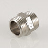 Латунный никелированный фитинг для соединения элементов трубопровода равного диаметра. Резьба – наружная/наружная, цилиндрическая трубная по ГОСТу 6357 (ISO 228, EN 10226). Предусмотрен участок корпуса шестигранной формы, под гаечный ключ.