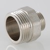 Резьбовой фитинг – ниппель переходной. Обеспечивает соединение элементов трубопровода разного диаметра. Выполнен из латуни CW617N (евростандарт EN12165) горячим штампованием с последующим никелированием. Резьба обоих патрубков – наружная (тип – цилиндрическая трубная, ГОСТ 6357, ISO 228, EN10226). Насечки на резьбе способствуют удержанию герметизирующего материала (например, сантехнического льна). Наличие шестигранного (под гаечный ключ) участка корпуса облегчает монтаж соединения. Максимальная температура использования ниппеля составляет 250 °С (при максимальном рабочем давлении 2,7/1,7 бар – для моделей условным диаметром до/более 1”).