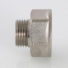 Назначение фитинга – переход с внутренней резьбы на наружную (больший/меньший диаметр). Переходник изготовлен горячим штампованием из латуни CW617N с последующим никелированием. Корпус фитинга – шестигранный – под гаечный ключ. Резьба – трубная цилиндрическая, совместимая с наружной конической по ГОСТу 6211. Номинальное давление – 40/25 бар (для типоразмеров до/более 1”). Максимальное рабочее давление при температуре среды 250 °С – 2,7/1,7 бара. Переходник применим на стальных, медных, латунных, пластиковых, металлопластиковых трубопроводах.