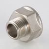 Назначение фитинга – переход с внутренней резьбы на наружную (больший/меньший диаметр). Переходник изготовлен горячим штампованием из латуни CW617N с последующим никелированием. Корпус фитинга – шестигранный – под гаечный ключ. Резьба – трубная цилиндрическая, совместимая с наружной конической по ГОСТу 6211. Номинальное давление – 40/25 бар (для типоразмеров до/более 1”). Максимальное рабочее давление при температуре среды 250 °С – 2,7/1,7 бара. Переходник применим на стальных, медных, латунных, пластиковых, металлопластиковых трубопроводах.