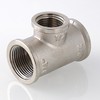 Латунный никелированный трехсторонний фитинг с переходом на меньший диаметр в центральном выходе. Резьба – внутренняя, цилиндрическая трубная по ГОСТу 6357 (ISO 228, EN 10226), совместима также с наружной конической трубной резьбой по ГОСТу 6211 (ISO R7).