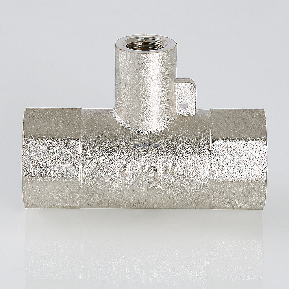 Фитинг выполнен горячим штампованием из сантехнической латуни марки CW617N, имеет никелевое покрытие. Предусмотрено ушко для пломбирования.