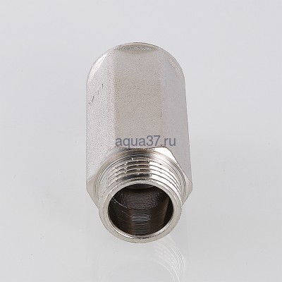 Латунный никелированный фитинг для удлинения соединений на 10–50 мм (в зависимости от модели). Форма корпуса – шестигранная, под гаечный ключ. Резьба – внутренняя/наружная, цилиндрическая трубная по ГОСТу 6357 (ISO 228, EN 10226), совместимая также с наружной конической трубной резьбой по ГОСТу 6211 (ISO R7). Диаметр – 1/2".