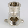 Латунный никелированный угольник с креплением. Резьба – внутренняя/внутренняя, цилиндрическая трубная по ГОСТу 6357 (ISO 228, EN 10226), совместима также с наружной конической трубной резьбой по ГОСТу 6211 (ISO R7). Присоединительный диаметр – 1/2". Диаметр отверстий для шурупов – 4,5 мм, межосевое расстояние – 35 мм.