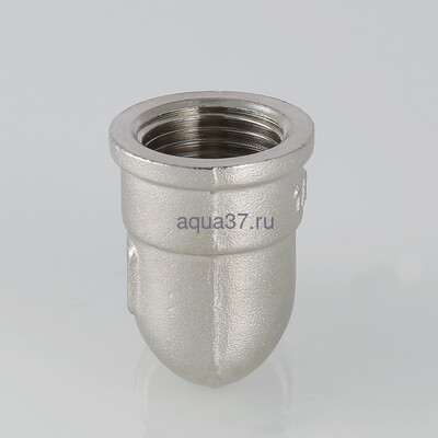 Угловой латунный никелированный фитинг. Резьба – внутренняя/наружная, цилиндрическая трубная по ГОСТу 6357 (ISO 228, EN 10226). Внутренняя резьба фитинга совместима также с наружной конической резьбой по ГОСТу 6211 (ISO R7).